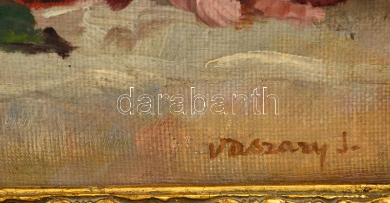 Beschreibung: Vaszary jelzéssel: Virágcsendélet. Olaj, karton, keretben, 35×25 cm