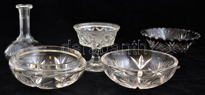 Beschreibung: Üveg tárgyak kis csorbákkal: bonbonier, kiöntő, tálak összesen: 4 db, m:7-15 cm