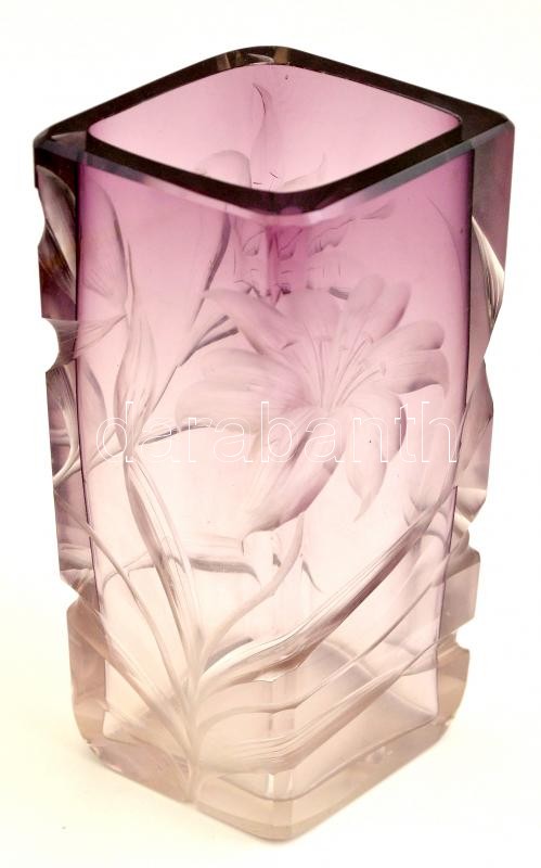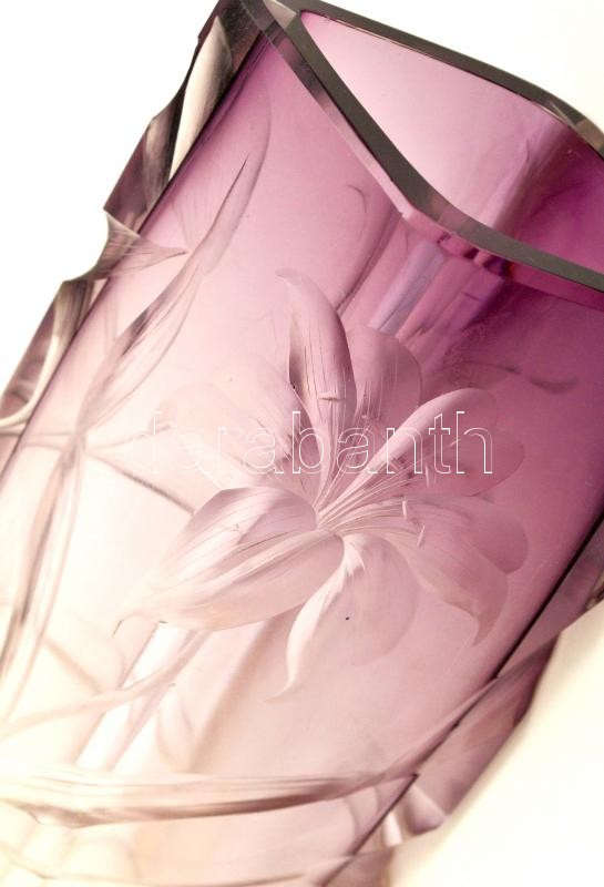 Beschreibung: cca 1920 Moser ametiszt váza, mélyen metszett fújt váza, jelzés és csorba nélkül, m:20,5