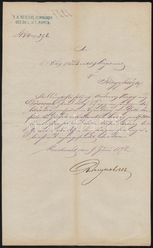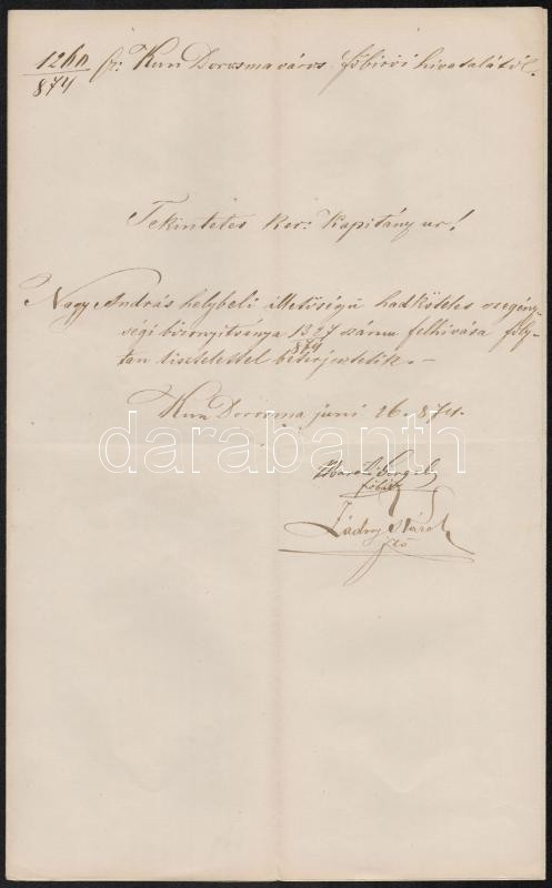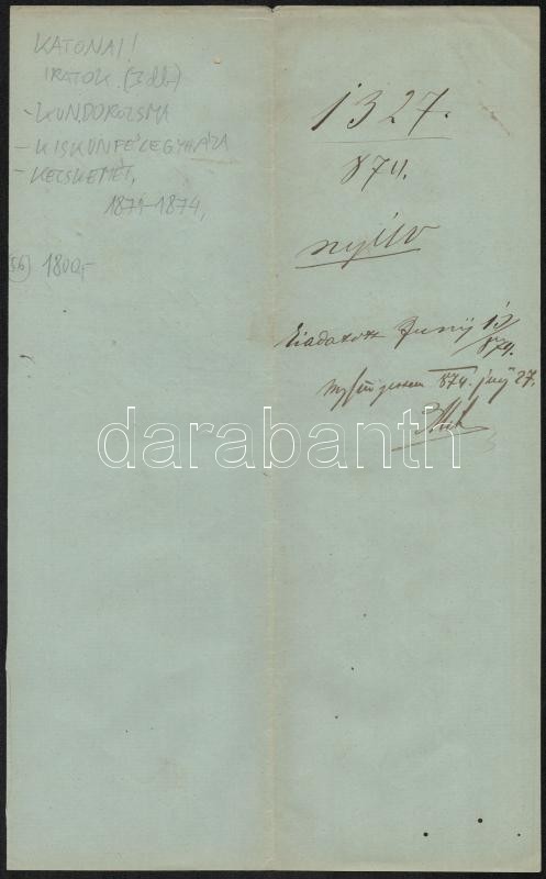 1871-1874 Katonai iratok Kundorozsmáról, Kiskunfélegyházáról, Kecskemé... https://www.darabanth.com/de/306-Fernauktion/306.0/Andere-Sammelgebiete/Militaria~100028/1871-1874-Katonai-iratok-Kundorozsmarol-Kiskunfelegyhazarol-Kecskemetrol-3-db~II1652773