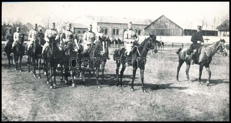 Beschreibung: Az I. világháború hadszíntereiről, hadba vonuló budapesti katonákról készített fotók későbbi nagyításai, Hátoldalon részletesen feliratozva. 18x12 cm