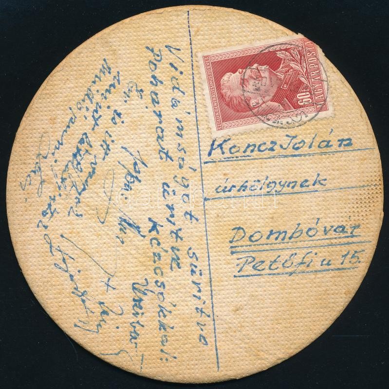 Beschreibung: Kőbányai Aranyászok sör söralátét később postán elküldve