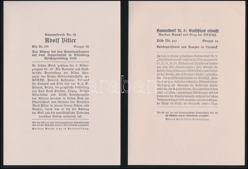cca 1935 Adolf Hitler nagyméretű cigaretta gyűjtőképek 4 db. Náci prop... https://www.darabanth.com/de/306-Fernauktion/306.0/Andere-Sammelgebiete/Militaria~100028/cca-1935-Adolf-Hitler-nagymeretu-cigaretta-gyujtokepek-4-db-Naci-propaganda-Large-propagand~II1645886