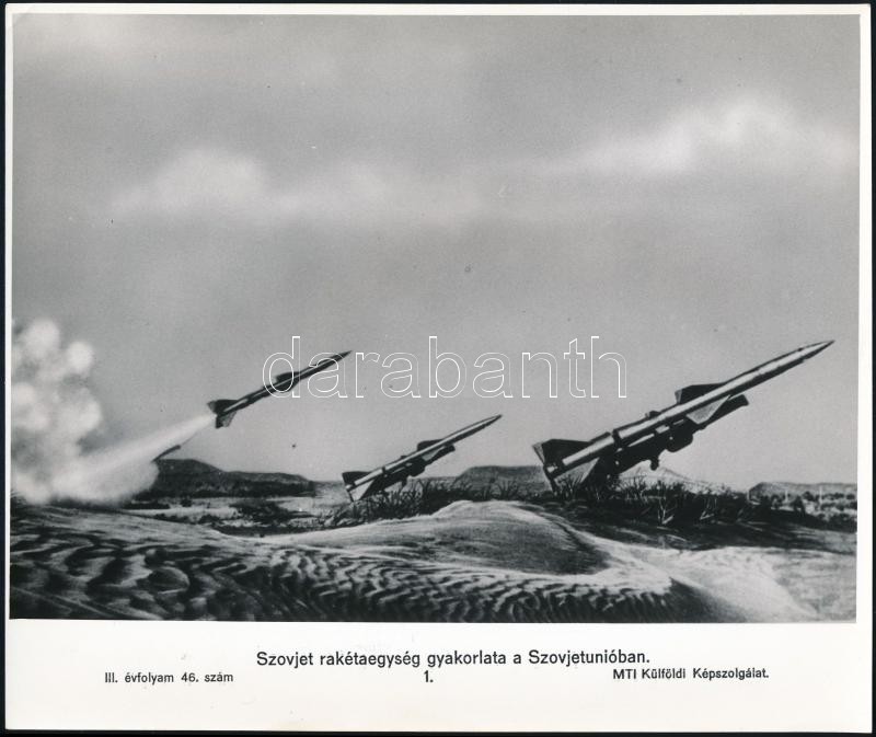cca 1965 Magyar és szovjet rakétaegységeket ábrázoló 3 db MTI fotó, fe... https://www.darabanth.com/de/306-Fernauktion/306.0/Andere-Sammelgebiete/Militaria~100028/cca-1965-Magyar-es-szovjet-raketaegysegeket-abrazolo-3-db-MTI-foto-feliratozva-26-5x18-5-cm~II1651441