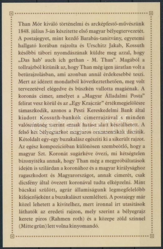 Beschreibung: 2017 Burján-essay, hátoldalán a bélyegterv történetének leírása