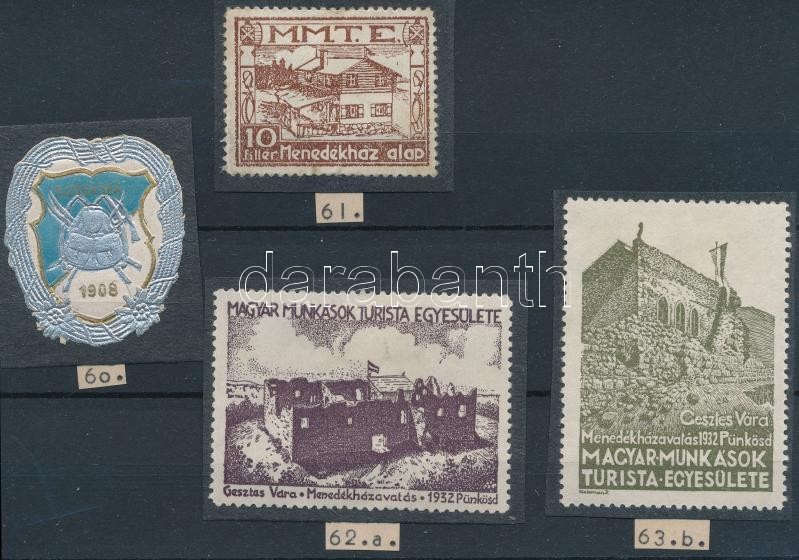 Beschreibung: 4 db turista bélyeg, közte ,,Szögesek" pecsétbélyeg, avatások stb... katalógus jelzőszámmal