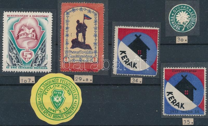 Beschreibung: 6 db ritka turista bélyeg, Menedékház, Forrásavatás, Gyopár, Kolozsvár