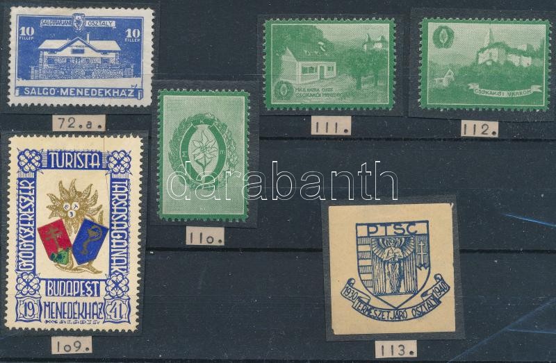 Beschreibung: 6 db turista bélyeg, közte ,,A menedékház alapjára 10f "stb...