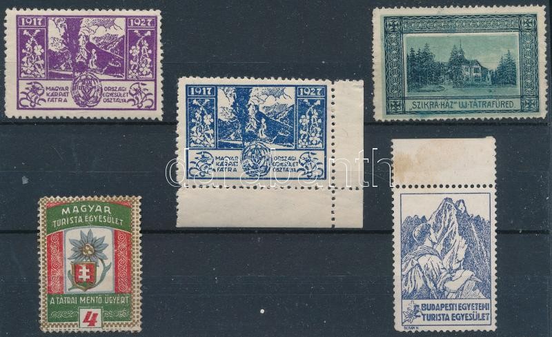 Beschreibung: Magyarországi Kárpát Egyesület Fátra Osztálya 5 db levélzáró bélyeg