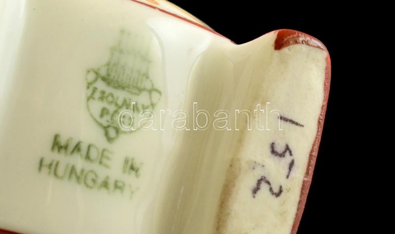Zsolnay kisméretű kulacs, matricás, jelzett, apró kopásokkal, m: 9 cm https://www.darabanth.com/de/306-Fernauktion/306.0/Andere-Sammelgebiete/Porzellan~100008/Zsolnay-kismeretu-kulacs-matricas-jelzett-apro-kopasokkal-m-9-cm~II1634665
