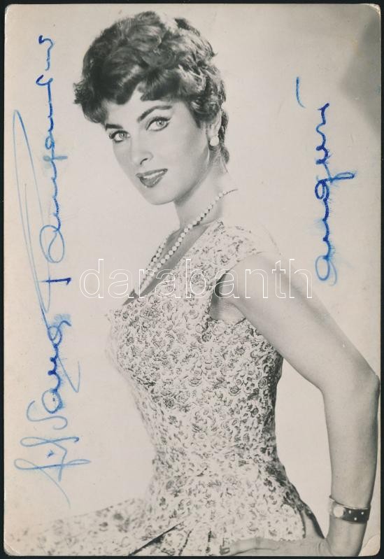 Beschreibung: Silvana Pampanini (1925-2016) olasz színésznő aláírása őt magát ábrázoló fotón