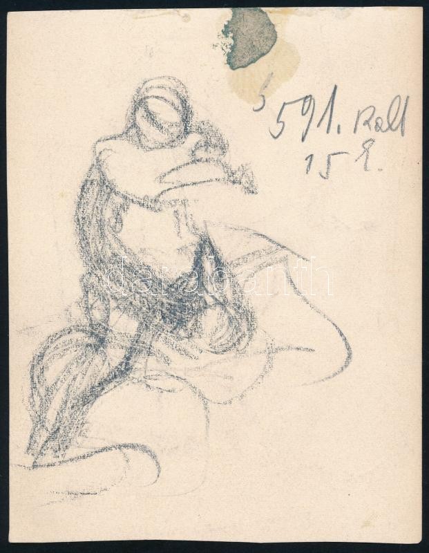 Beschreibung: Hegedűs László hagyatéki pecséttel: Vázlat rajz. Ceruza, papír, 14,5×11,5 cm