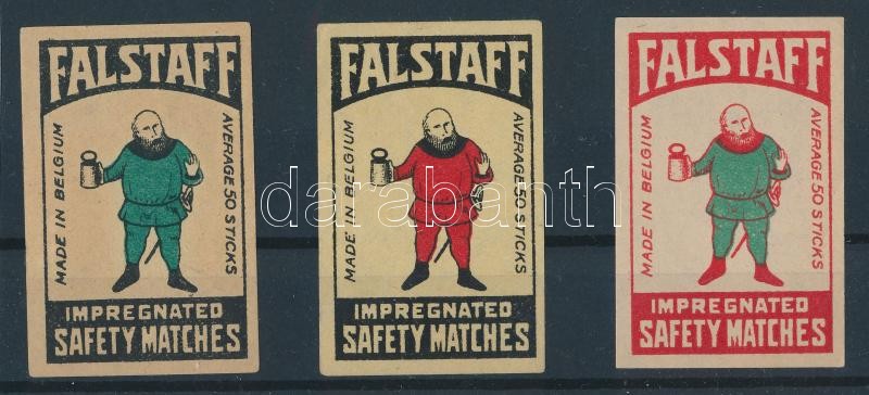 Beschreibung: Falstaff belga gyufacímke sorozat, 3 db