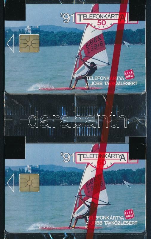 Beschreibung: 1991 2 db Balaton szörf telefonkártya, összefüggő bontatlan csomagolásban