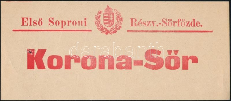 Korona-sör, dobozcímke, Első Soproni Részvény Sörfőzde, a hátoldalon j... https://www.darabanth.com/de/306-Fernauktion/306.0/Andere-Sammelgebiete/Werbungen~100023/Korona-sor-dobozcimke-Elso-Soproni-Reszveny-Sorfozde-a-hatoldalon-jegyzettel-6x15-cm~II1652880