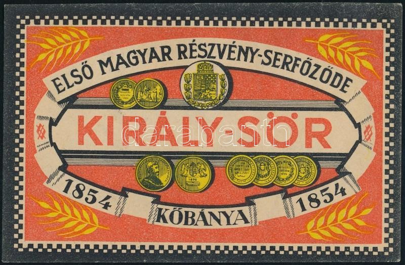 cca 1920-1940 Király-sör, sörcímke, Kőbánya Első Magyar Részvény Serfő... https://www.darabanth.com/de/306-Fernauktion/306.0/Andere-Sammelgebiete/Werbungen~100023/cca-1920-1940-Kiraly-sor-sorcimke-Kobanya-Elso-Magyar-Reszveny-Serfozde-7x11-cm~II1652681