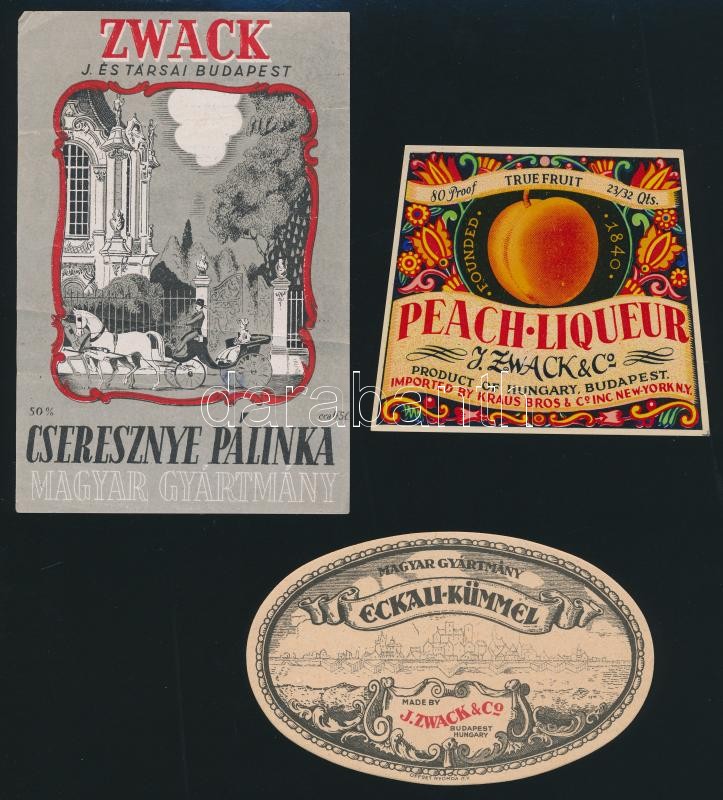 cca 1930 3 db Zwack italcímke: Peach Liqueur, Eckau-Kümmel, cseresznye... https://www.darabanth.com/de/306-Fernauktion/306.0/Andere-Sammelgebiete/Werbungen~100023/cca-1930-3-db-Zwack-italcimke-Peach-Liqueur-Eckau-Kummel-cseresznye-palinka-koztuk-exportra~II1656306