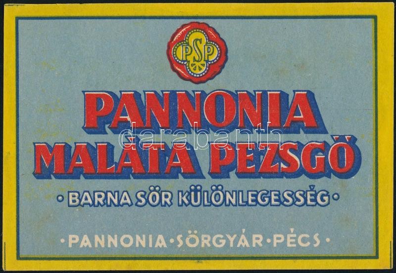 cca 1940 Pannonia Maláta Pezsgő, sörcímke, Pannonia Sörfőző Rt. Pécs, ... https://www.darabanth.com/de/306-Fernauktion/306.0/Andere-Sammelgebiete/Werbungen~100023/cca-1940-Pannonia-Malata-Pezsgo-sorcimke-Pannonia-Sorfozo-Rt-Pecs-8x12-cm~II1652687