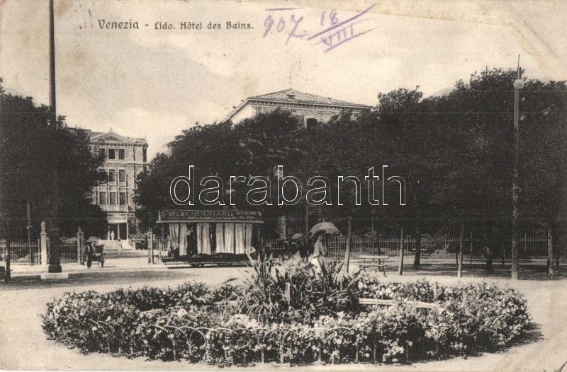 Venice, Venezia; Lido Hotel des Bains / hotel, tram, Velma Suchard adv... https://www.darabanth.com/de/306-Fernauktion/306.0/Ansichtskarten/Italien~300054/Venice-Venezia-Lido-Hotel-des-Bains-hotel-tram-Velma-Suchard-advertisement-wet-damage~II1616011