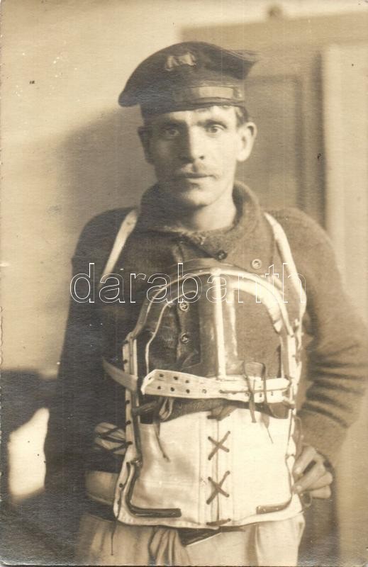 Beschreibung: 1919 Első világháborús rokkant utókezelő / WWI K.u.k. military, disabled aftertreated soldier, photo