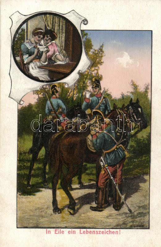 In Eile ein Lebenszeichen / WWI romantic postcard, K.u.K. military https://www.darabanth.com/de/306-Fernauktion/306.0/Ansichtskarten/Militaria~300094/In-Eile-ein-Lebenszeichen-WWI-romantic-postcard-KuK-military~II948768