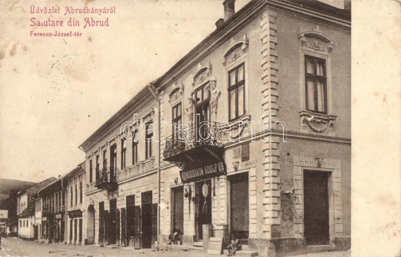 1917 Abrudbánya, Abrud; Ferenc József tér, Nussbaum Adolf üzlete. Radó... https://www.darabanth.com/de/306-Fernauktion/306.0/Ansichtskarten/Siebenburgen~300006/1917-Abrudbanya-Abrud-Ferenc-Jozsef-ter-Nussbaum-Adolf-uzlete-Rado-Boldizsar-kiadasa-sq~II1651280