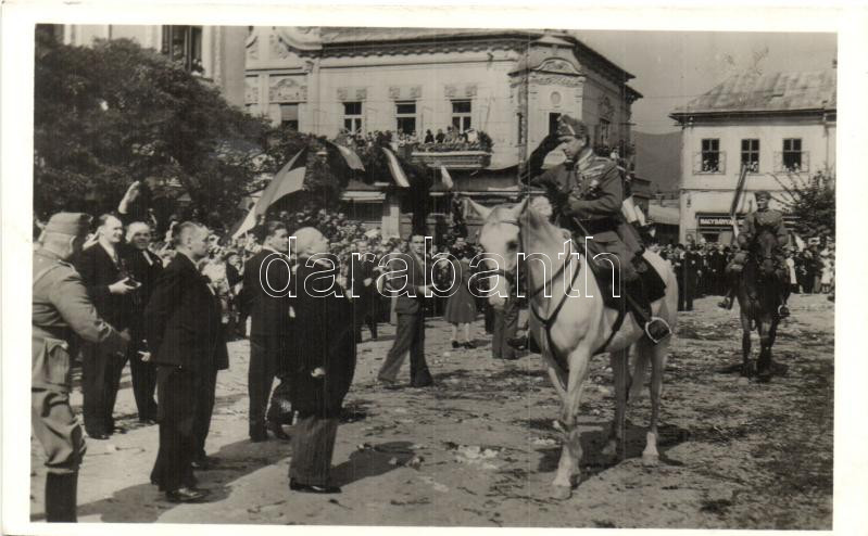1940 Nagybánya, Baia Mare; a város vezetősége üdvözli a városba érkező Albrecht királyi herceget, bevonulás / entry of the Hungarian troops, Prince Albrecht, "1940 Nagybánya visszatért" So. Stpl