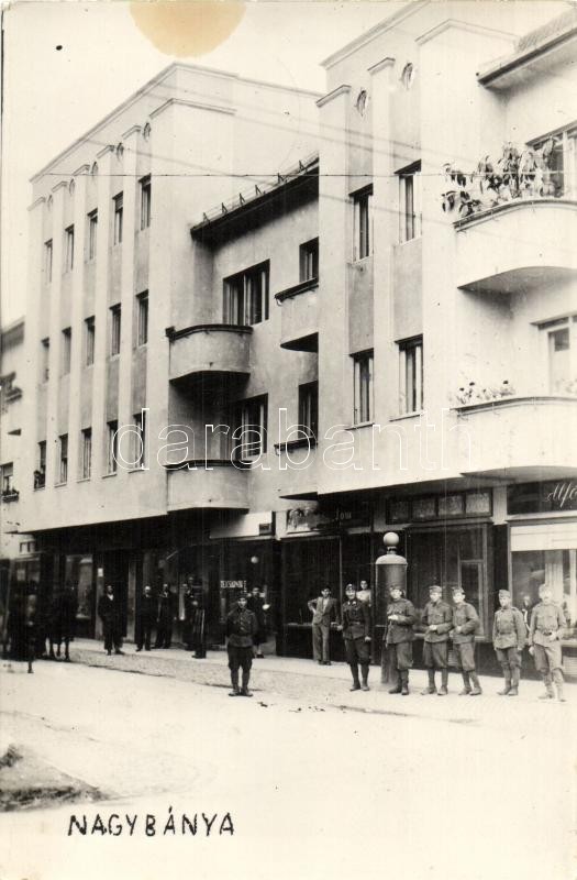 1940 Nagybánya, Baia Mare; bevonulás, katonák csoportképe, tejcsarnok,... https://www.darabanth.com/de/306-Fernauktion/306.0/Ansichtskarten/Siebenburgen~300006/1940-Nagybanya-Baia-Mare-bevonulas-katonak-csoportkepe-tejcsarnok-Low-uzlete-entry-of-t~II1656927