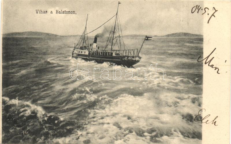 Balaton, vihar, gőzhajó, Balázsovich Gyula kiadása https://www.darabanth.com/de/306-Fernauktion/306.0/Ansichtskarten/Ungarn~300005/Balaton-vihar-gozhajo-Balazsovich-Gyula-kiadasa~II1463565
