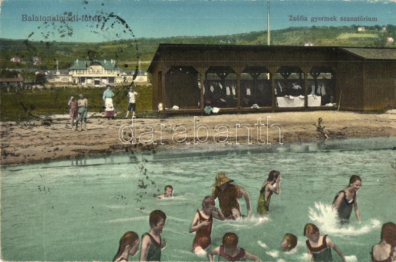 Beschreibung: Balatonalmádi-fürdő, Zsófia gyermekszanatórium fürdője. MÁV pecséttel (fl)