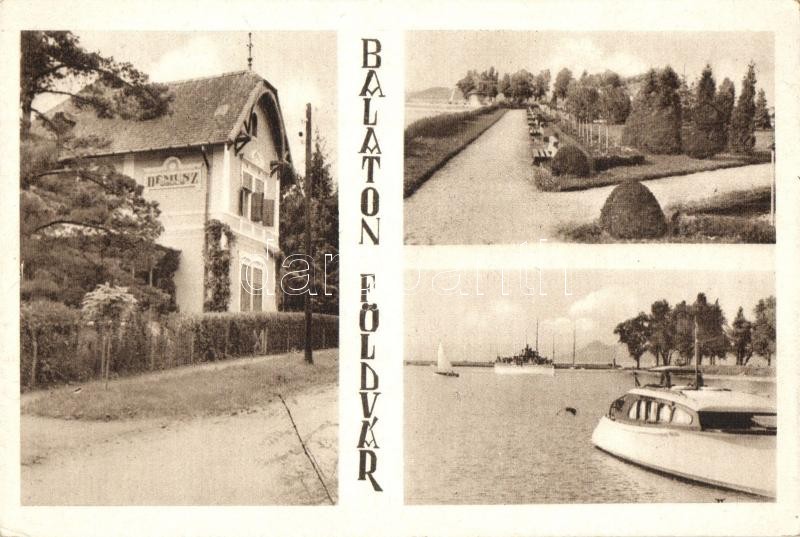 Balatonföldvár, Démusz üdülő, motorcsónak https://www.darabanth.com/de/306-Fernauktion/306.0/Ansichtskarten/Ungarn~300005/Balatonfoldvar-Demusz-udulo-motorcsonak~II1542429