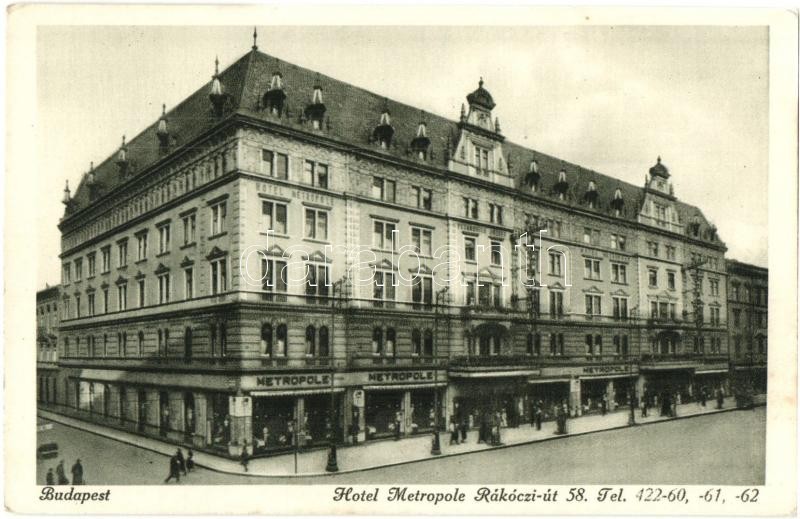 Budapest VII. Hotel Metropole szálloda. Rákóczi út 58. https://www.darabanth.com/de/306-Fernauktion/306.0/Ansichtskarten/Ungarn~300005/Budapest-VII-Hotel-Metropole-szalloda-Rakoczi-ut-58~II1652960