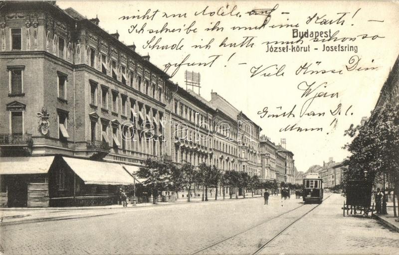 Budapest VIII. József körút, Gruber Károly kávéháza, villamos (EK) https://www.darabanth.com/de/306-Fernauktion/306.0/Ansichtskarten/Ungarn~300005/Budapest-VIII-Jozsef-korut-Gruber-Karoly-kavehaza-villamos-EK~II1562797