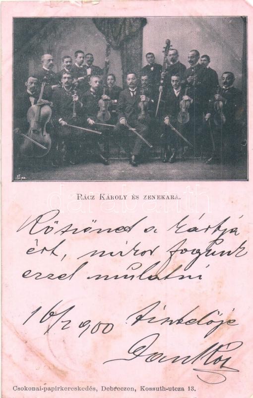 Debrecen, Rácz Károly és zenekara (kis szakadások / small tears) https://www.darabanth.com/de/306-Fernauktion/306.0/Ansichtskarten/Ungarn~300005/Debrecen-Racz-Karoly-es-zenekara-kis-szakadasok-small-tears~II1615493