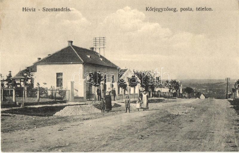 Beschreibung: Hévíz (Hévízszentandrás), Körjegyzőség, posta és telefon, utcakép, Kiadja Mérei Ignác