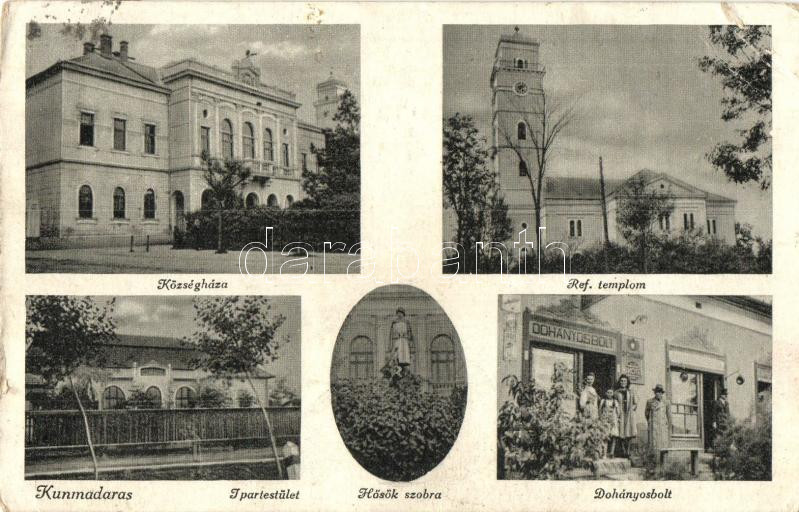 Kunmadaras, Községháza, Dohányosbolt, Ipartestület (EK) https://www.darabanth.com/de/306-Fernauktion/306.0/Ansichtskarten/Ungarn~300005/Kunmadaras-Kozseghaza-Dohanyosbolt-Ipartestulet-EK~II1449064