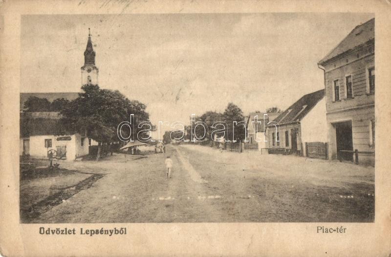 Lepsény, Piac tér, templom (EK) https://www.darabanth.com/de/306-Fernauktion/306.0/Ansichtskarten/Ungarn~300005/Lepseny-Piac-ter-templom-EK~II1652663