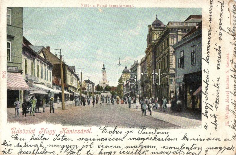 Nagykanizsa, Fő tér, Felső templom, üzletek (szakadás / tear) https://www.darabanth.com/de/306-Fernauktion/306.0/Ansichtskarten/Ungarn~300005/Nagykanizsa-Fo-ter-Felso-templom-uzletek-szakadas-tear~II1655233