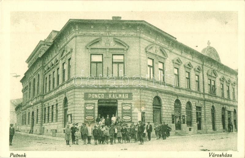 Putnok, Pongó Kálmán üzlete, városháza, P. K. és G. K. kiadása (EK) https://www.darabanth.com/de/306-Fernauktion/306.0/Ansichtskarten/Ungarn~300005/Putnok-Pongo-Kalman-uzlete-varoshaza-P-K-es-G-K-kiadasa-EK~II1553051