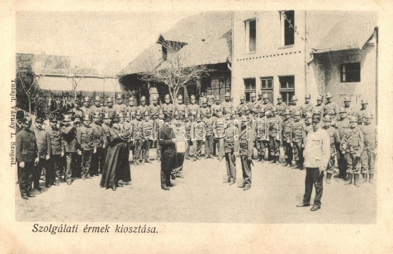 Szeged, Tűzoltó szolgálati érmek kiosztása. Várnay L. kiadása https://www.darabanth.com/de/306-Fernauktion/306.0/Ansichtskarten/Ungarn~300005/Szeged-Tuzolto-szolgalati-ermek-kiosztasa-Varnay-L-kiadasa~II1655754