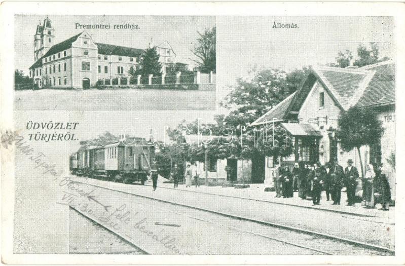 Türje, Vasútállomás vonattal, Premontrei rendház https://www.darabanth.com/de/306-Fernauktion/306.0/Ansichtskarten/Ungarn~300005/Turje-Vasutallomas-vonattal-Premontrei-rendhaz~II1656565