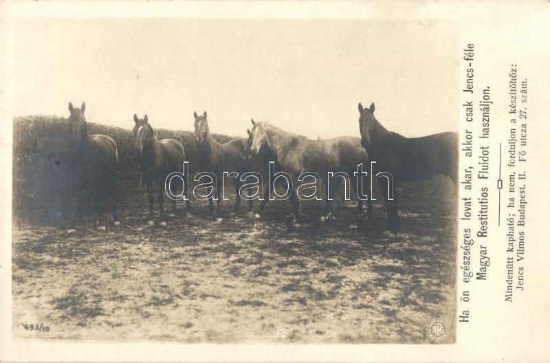 Ha ön egészséges lovat akar, akkor csak Jencs-féle Magyar Restitutios Fluidot használjon. Magyar lóápolási reklámlap / Hungarian horse care advertisement card
