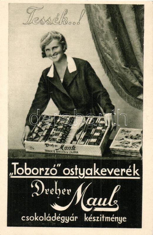 Beschreibung: Toborzó ostyakeverék. Dreher Mauls csokoládégyár reklámlapja / Hungarian chocolate wafer advertisement