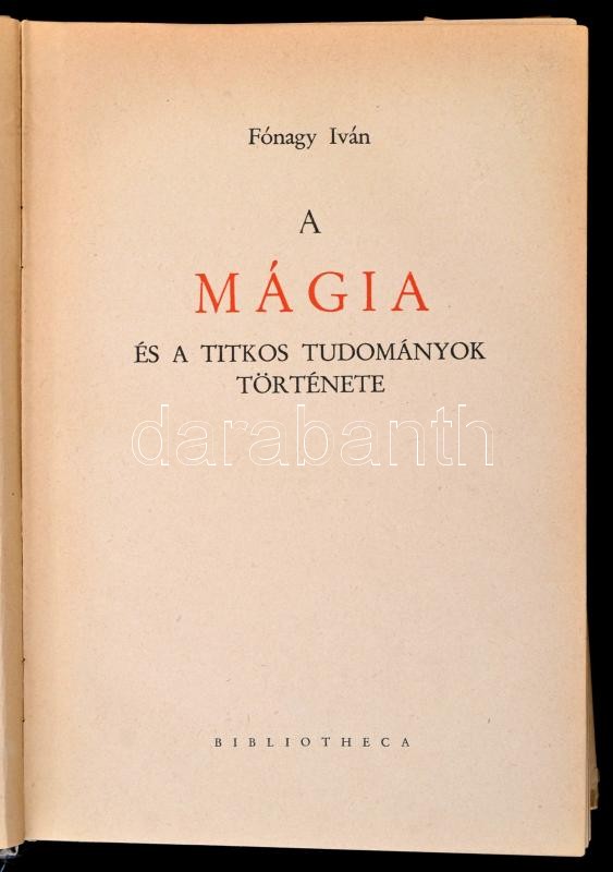 Fónagy Iván: A mágia és a titkos tudományok története. Bp., 1943, Bibl... https://www.darabanth.com/de/306-Fernauktion/306.0/Bucher/Bucher-Andere-kuriositaten~500018/Fonagy-Ivan-A-magia-es-a-titkos-tudomanyok-tortenete-Bp-1943-Bibliotheca-Kiadoi-felvC3~II1653588