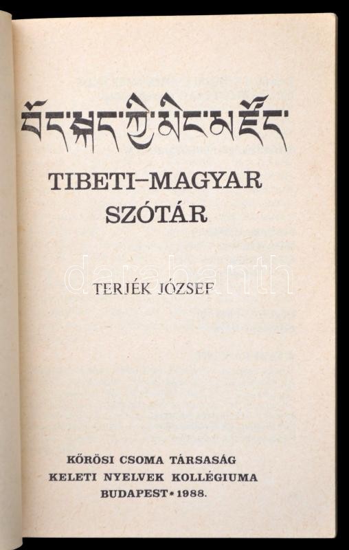 Terjék József: Tibeti-magyar szótár. Keleti nyelvek kincsestára. Bp., ... https://www.darabanth.com/de/306-Fernauktion/306.0/Bucher/Bucher-Andere-kuriositaten~500018/Terjek-Jozsef-Tibeti-magyar-szotar-Keleti-nyelvek-kincsestara-Bp-1988-Korosi-Csoma-Tar~II1655504