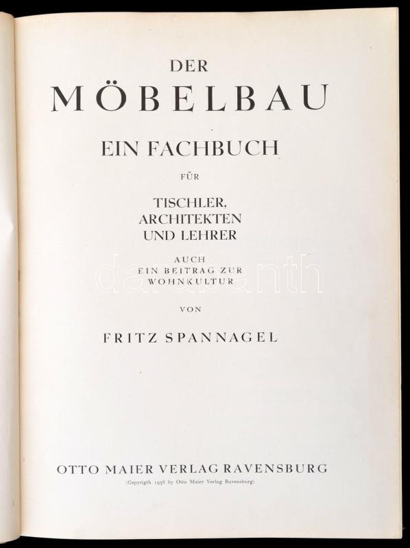 Fritz Spannagel: Der Möbelbau. Bútorkészítésről szóló szakkönyv német nyelven, Ravensburg, 1936. Otto Meier/ 1936 Furniture making book from Fritz Spannagel in german language, Otto Meier issue, Ravensburg