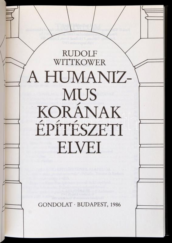 Rudolf Wittkower: A humanizmus korának építészeti elvei. Fordította: Tatai Mária. Bp.,1986, Gondolat. Kiadói kartonált papírkötés, kiadói papír védőborítóban. Jó állapotban.