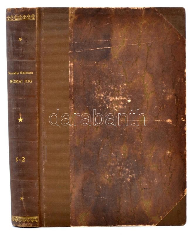Személyi Kálmán: Római jog I-II. Nyiregyháza, 1932, Jóba Elek Könyvnyomdája. Korabeli félvászon-kötés, az eredeti elülső papírborítót az átkötéskor felhasználták, kopottas borítóval, számos ceruzás aláhúzással, de egyébként jó állapotban. A szerző, Személyi kálmán (1884-1946) jogász, egyetemi tanár dedikációjával.