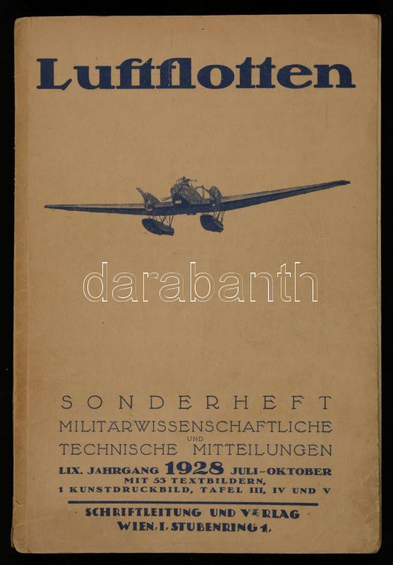 Luftflotten. Sonderheft Militärwissenschaftl. und Techn. Mitteilungen. Wien. 1928. 752p. + 1 t (a többi 4 hiányzik) Papírkötésben / 1 table is present from 5