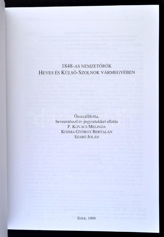1848-as nemzetőrök Heves és Külső-Szolnok vármegyében. Összeáll.: P. Kovács Melinda, Kozma György Bertalan, Szabó Jolán. Eger, 1999, Heves Megyei Levéltár (A Heves Megyei Levéltár forráskiadványai 6.). Papírkötésben, jó állapotban.